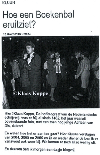 4.4. (...) Er dient een voldoende functioneel verband te zijn tussen de geciteerde afbeelding en de aankondiging. Van enig functioneel verband is sprake, nu de aankondiging betrekking heeft op een absentie vanwege het boekenbal en de afbeelding een foto is die genomen is op een boekenbal. Naar het oordeel van de kantonrechter is dat verband echter onvoldoende. Het betreffende boekbal vond immers plaats in 2007, terwijl de foto het boekenbal van 1984 betreft. Kennelijk heeft de foto hier geen andere betekenis dan het begrip 'boekenbal' te illustreren. Daar komt bij dat de illustratie ook niet ondergeschikt is aan de tekst, maar wat betreft de omvang ongeveer gelijk is. Ook naar de betekenis gezien is de foto niet bestemd om dienstbaar te zijn aan de tekst, zoals blijkt uit de uitlating van Van de Klundert ter comparitie. Die heeft immers verklaard: "Het artikel 'hoe ziet een boekenbal er uit', had niet kunnen bestaan zonder de foto. Zonder de foto valt het bestaansrecht van het artikel weg."