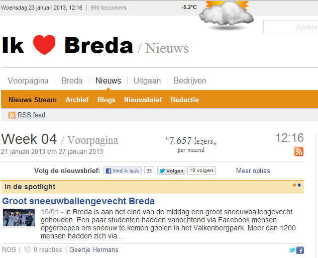 Rechtspraak.nl: Gedaagde heeft zonder toestemming van eiser en meestal zonder naamsvermelding nieuwswaardige foto’s van eiser, een professioneel fotograaf, geplaatst op zijn website [ihvbreda.nl - nieuwsstream]. Eiser stelt dat gedaagde daarmee inbreuk heeft gemaakt op zijn auteurs- en persoonlijkheidsrechten op die foto’s en vordert onder meer een schadevergoeding.