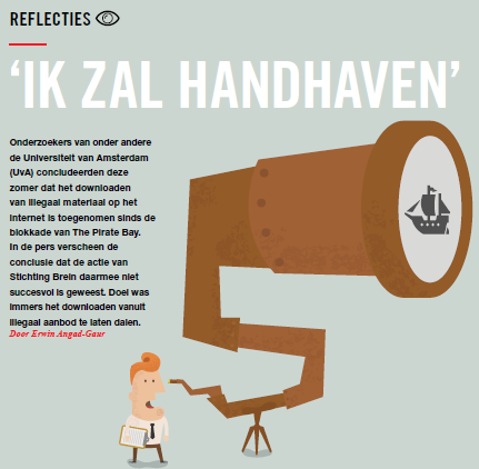 Onderzoekers van onder andere de Universiteit van Amsterdam (UvA) concludeerden deze zomer dat het downloaden van illegaal materiaal op het internet is toegenomen sinds de blokkade van The Pirate Bay. In de pers verscheen de conclusie dat de actie van Stichting Brein daarmee niet succesvol is geweest. Doel was immers het downloaden vanuit illegaal aanbod te laten dalen.