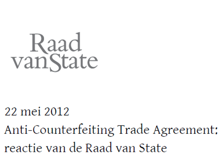 De Raad van State ziet geen ruimte zich uit te spreken of het ACTA-verdrag, ter bescherming van intellectueel eigendom, strijdig is met de grondrechten voor burgers, nu de Europese Commissie het Hof van Justitie om advies over de interpretatie van het ACTA- verdrag heeft gevraagd.