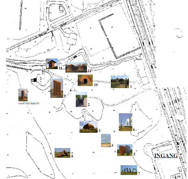 Vraag over eigendom en gebruiksrechten op (afbeeldingen van) kunstvoorwerpen die zich bevinden op De Nollen. Natrekking, auteursrecht. “totaalkunstwerk” (plattegrond hieronder): een integratie van beeldende kunst, landschap en architectuur. Kunstenaar