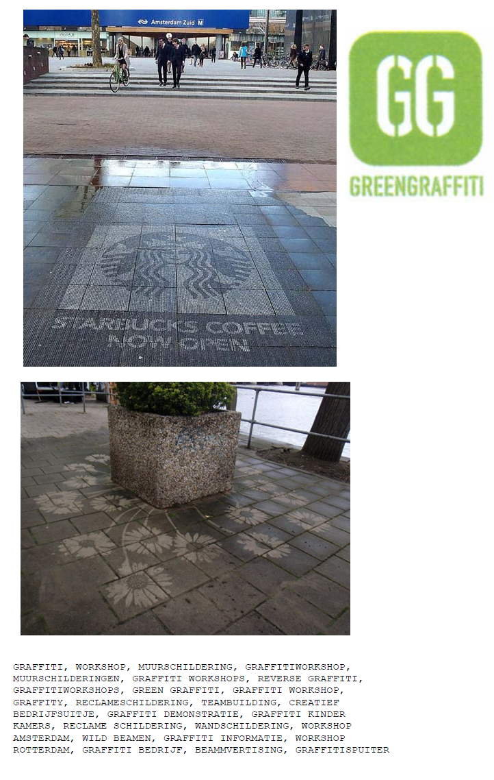 GreenGraffiti verzorgt (buiten)reclamecampagnes en is actief in onder meer Nederland, Duitsland, Italië, Bulgarije en Finland. Zij brengt tijdelijke reclameboodschappen aan via Reverse graffiti, middels het schoonspuiten van een stuk straat of muur dat gedeeltelijk is afgedekt door een mal. Zij is houdster van woordmerk en beeldmerk met woordelement GREENGRAFFITI. Janssens drijft een eenmanszaak via een website graffitinetwerk.nl die ook via green-graffiti.nl en green-graffiti.com is te bereiken. Ook in de broncode zijn de (beschrijvende) woorden GREEN en GRAFFITI opgenomen.