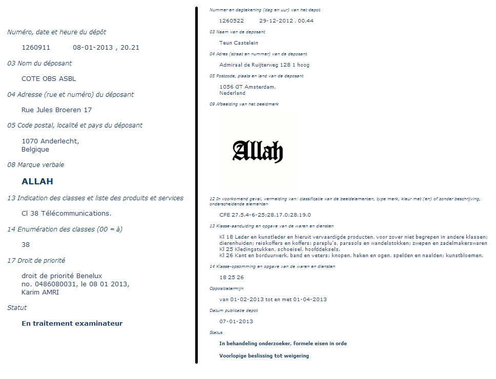 Gisteren is de voorlopige beslissing van het BBIE tot weigering beeldmerk Allah 8 januari 2013, depotnr. 1260522 (Allah) gepubliceerd,