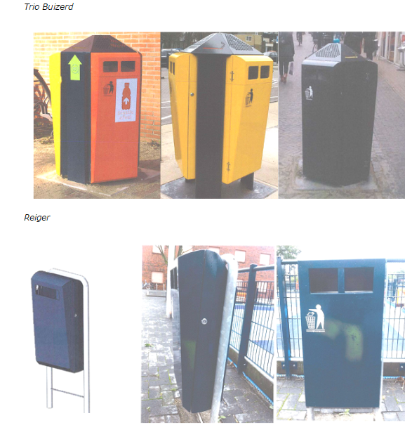 Auteursrecht. Modelrecht. Eisers zijn metaalbedrijven en ontwerpen, produceren en distribueren afvalbakken bestemd voor de publieke ruimte samen met WTL. Eiser is houder van Gemeenschapsmodel op de afvalbakken Trio Buizerd en Reiger. Gedaagde moet iedere inbreuk op bestaande en toekomstige model- en auteursrechten staken. Zowel de Reiger als de Trio Buizerd zijn auteursrechtelijk beschermd. Bij de ontwerpen van de Reiger zijn creatieve keuze's gemaakt. Bij de Trio Buizerd zijn sommige elementen technisch bepaald, maar niet in overwegende mate aanwezig. Het vermoeden van ontlening op basis van overeenkomende totaalindrukken wordt niet door gedaagde ontkracht, zodat auteursrechtinbreuk op de Reiger en de Trio Buizerd toewijsbaar is. Er is geen sprake van een onrechtmatige daad: Een derde had met wedeweten van WTL toegang tot de dropbox met tekeningen, gelden deze niet als knowhow.