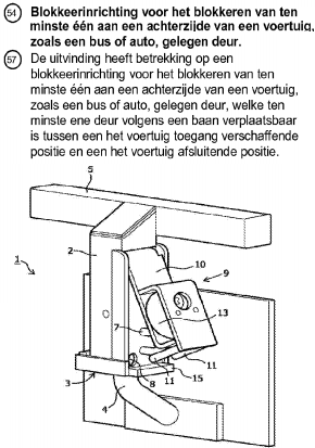 Octrooirecht. Advies ex artikel 84 Rijksoctrooiwet 1995 inzake de nieuwheid en inventiviteit van octrooi NL2004134 voor een 'blokkeerinrichting voor het blokkeren van ten minste één aan een achterzijde van een voertuig, zoals een bus of auto, gelegen deur.' Tot algemene vakkennis behoort niet het inzicht, hoe een specifieke constructie van een blokkeerinrichting zodanig gemodificeerd moet worden dat een slot op borgmiddelen gemakkelijk uitwisselbaar is zonder de borgmiddelen te vervangen. Het advies luidt dat geen van de aangevoerde nietigheidsbezwaren van toepassing is op het octrooi.