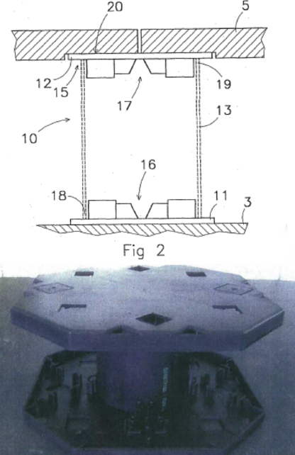 Octrooirecht. Geen inbreuk. Fixed constructions, bouw. Zoontjens Beton brengt onder het merk DNS een daknivelleringssysteem voor parkeerdaken, dakterrassen, balkons op de markt, zij is houdster van NL1022568 voor een steun voor een tegelvloer. Livingroof brengt ook een systeem op de markt onder het merk ONS (ophoog- en nivelleer-systeem). De gemiddelde vakman zal conclusie 1 begrijpen dat de oplegschijf zelf voldoende stijf is om de daarop geplaatste tegel te ondersteunen. Er staat niet vast dat er sprake is van inbreuk, de vorderingen worden afgewezen.