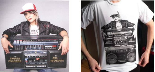 Auteursrecht. Portretrecht. Proceskosten. Fotograaf (eiser 2) geeft exclusieve licentie aan zangeres/MC (eiser 1). Smashed-Lemon verhandelt zwart-wit illustratie op t-shirt die identiek is aan foto, behalve dat zonnebril is toegevoegd.