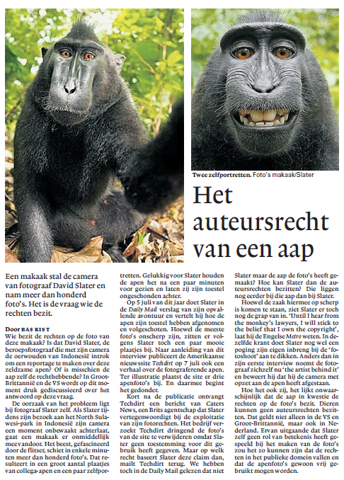Vanavond in NRC: B.Kist, 'Het auteursrecht van een aap', NRC Handelsblad 8 augustus 2011