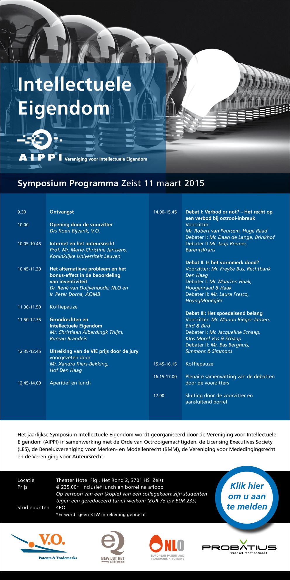 Voor leden van AIPPI vindt op woensdag 11 maart het AIPPI-Symposium te Zeist plaats. Het programma is zojuist bekendgemaakt (klik afbeelding voor vergroting). De jaarlijkse VIE-prijs zal daar worden uitgereikt, nomineren kan uiterlijk tot en met 28 januari a.s. via